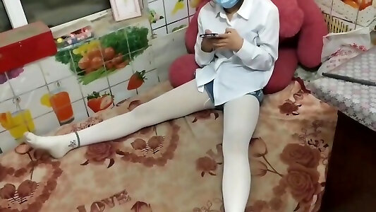 Slim levando no cu Lady in pantyhose and high-heeled slippers nails part 1