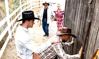 Bisexual guys suck each others dicks and fuck slutty blonde Candice Dare