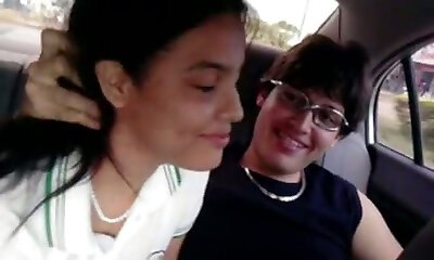 Busty teens having an unbelievable lesbian adventure inside the car