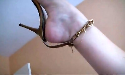 Black barely strappy heels ( heeljob shoejob cumshot )