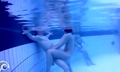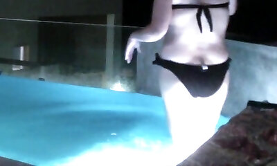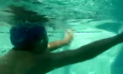 Naked dark-hued babe Lala Ivey is swimming in the pool before a crazy fuck-fest with her white neighbor