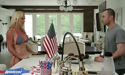 идеально сформированная пышногрудая мамочка брэнди с удовольствием соблазняет своего умопомрачительного сыночка