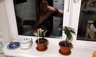 горячая стройная рыжеволосая красотка развлекается со своим здоровенным соседом и одаривает своего муженька-рогоносца поцелуем со спермой