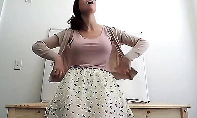 Jiggish floozy with puny ninnies Jasmine Lau takes off her clothes and dances