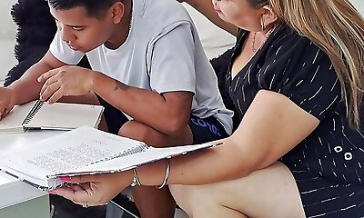 I help my stepson with his homework, his meatpipe distracts me and I end up sucking it