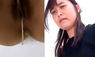 Lustful Asian taking a crap in a public restroom