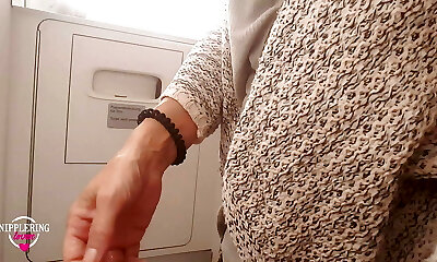 nippleringlover horny milf pissing on public toilet in airplane flashing pierced cunny and extreme pierced nipples