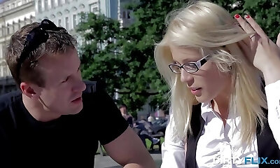 super-fucking-hot teenie mit brille bekommt riesige gesichtsbesamung nach steinharten schrauben