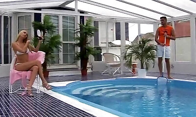 spitzbübisch super-hündin martina gold bekommt ihr ihren hinteren eingang in den pool eingefügt