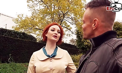 heiße rothaarige schlampe, die hungrig nach bbc-sex ist, genießt es, den riesigen monsterschwanz ihres freundes zu schlürfen und bittet ihn dann, ihre muschi zu zerstören
