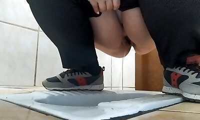 fleischige brüste unerfahrene schritte in die toilette für einen heck-stil, der durch ein glory-fickloch bohrt