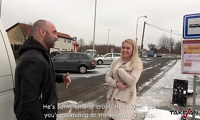 гладко выбритый парень наслаждается тем, как рвет неопытную платиновую блондинку с толстыми сиськами элли